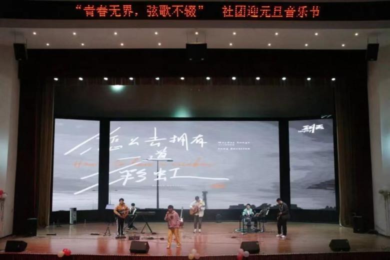 音乐节开场在我院拓荒者乐队带来的《想去海边》、《后来的我们》、《真的爱你》、《起风了》四首歌曲中拉开序幕,点燃全场氛围,现场座无虚席,掌声雷动。江西财经大学现代经济管理学院乐队—Juiceband为大家带来的《something just like this》、《河流》、《茶底世界》、《I really want to stay at yourhouse》,歌声磅礴有力,令人心情澎湃。南昌航空大学科技学院青年大道69号乐队尽情地唱着《白日梦蓝》和《只有音乐是我的解药》,感染着现场的每一位观众,将活动氛围推向高潮。伴随着掌声与呐喊声,高校乐队跨年音乐节在《知足》的大合唱中缓缓落幕。